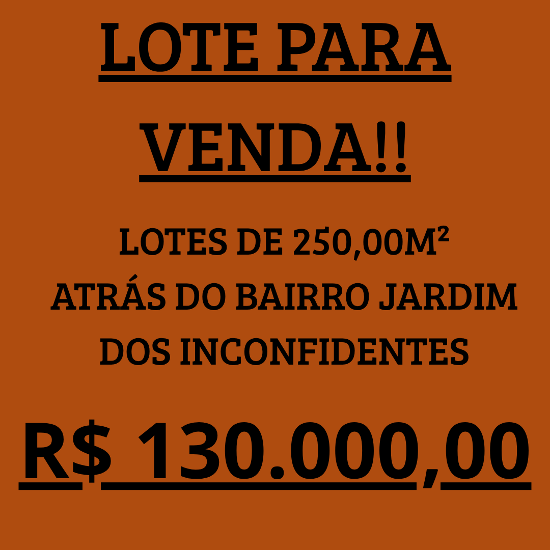 LOTES PARA VENDA!! ATRAS DO BAIRRO JARDIM DOS INCONFIDENTES 250,00M² R$ 130.000,00